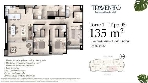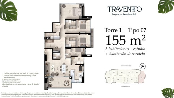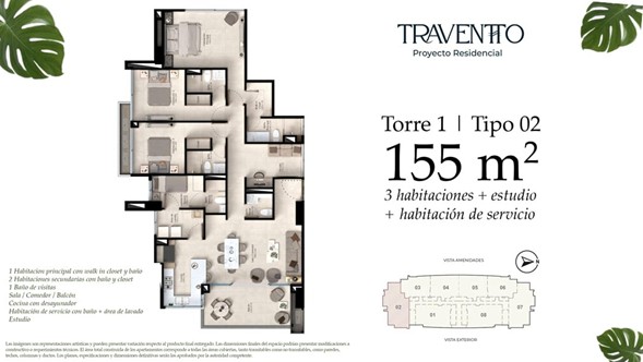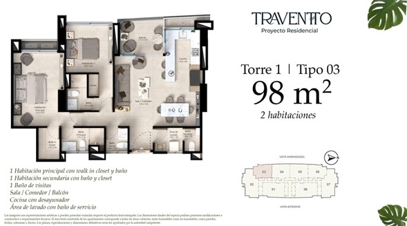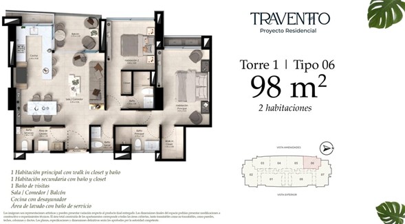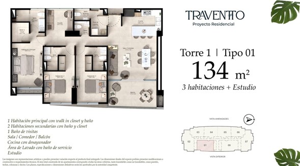 2 y 3 habitaciones de 98 a 156 m2 con 2 parqueos y locker .